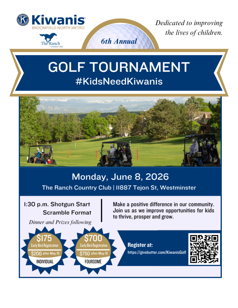 Our largest annual fundraiser, the 6th Annual #KidsNeedKiwanis Golf Tournament, will be held on Monday, June 8th, helping us raise funds for children in need. Sign up at https://givebutter.com/KiwanisGolf.